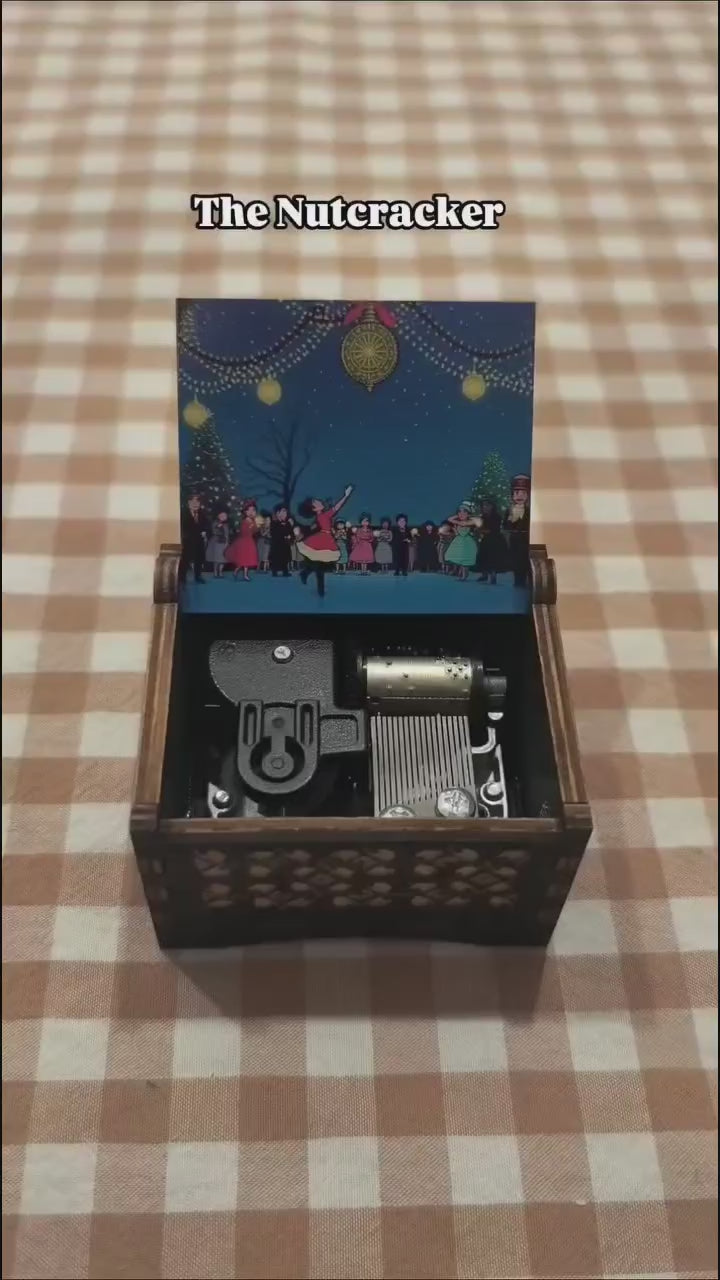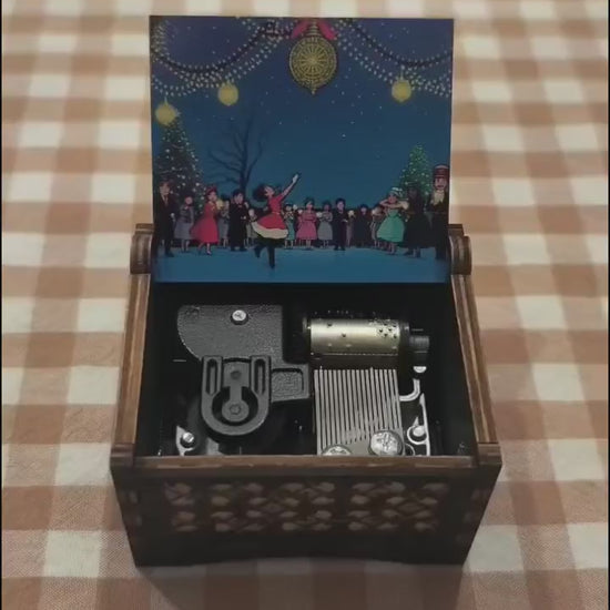This is a wind up music box. Turn the small wrist clockwise twice then release. The mechanism inside will then produce music automatically! 🎶